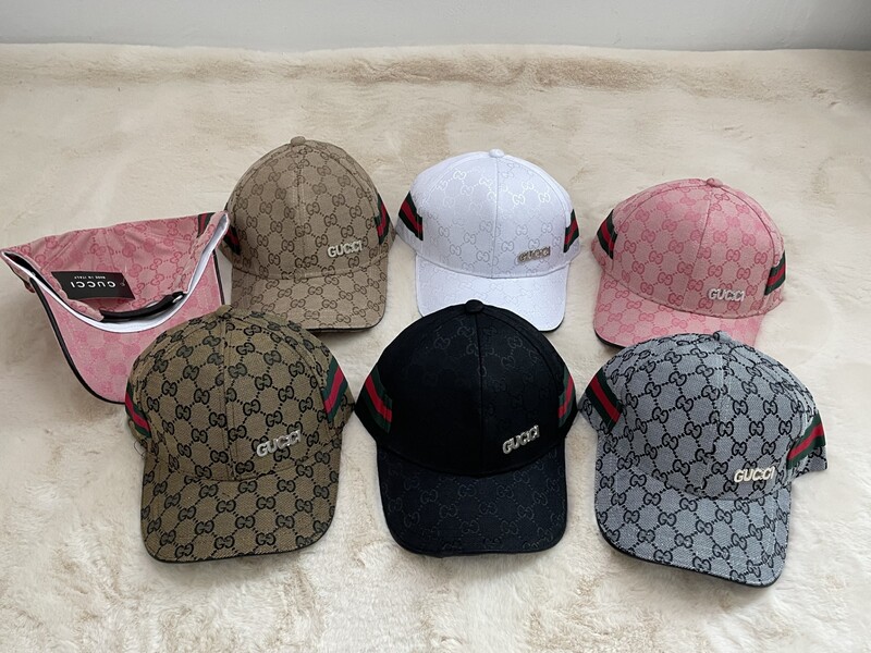 Elevate your style with our exclusive collection of designer-inspired caps! Crafted with meticulous attention to detail, these caps feature a classic monogram pattern, instantly recognizable and a symbol of sophisticated taste. Each cap boasts a comfortable fit and a stylish brim, perfect for adding a touch of luxury to your everyday look or completing a chic streetwear ensemble. Available in a versatile palette, including timeless beige, crisp white, charming pink, sleek black, and modern grey, there's a cap to complement every outfit and personal style. The iconic striped detailing on the sides adds a sporty yet elegant accent. Whether you're hitting the city streets, enjoying a casual outing, or simply want to upgrade your accessory game, these caps are the ultimate statement piece.