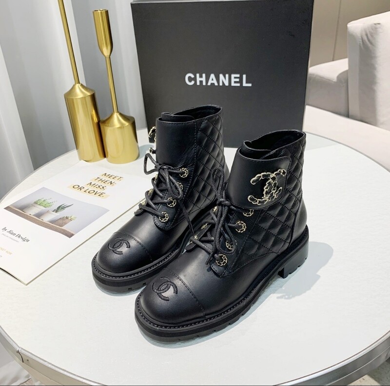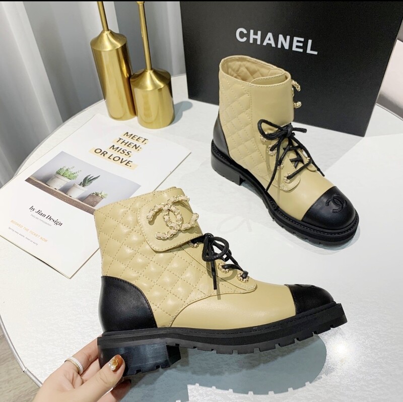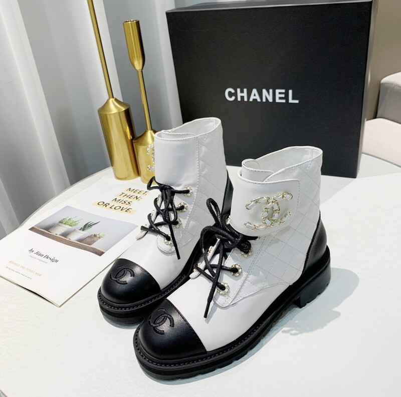 Capture the essence of timeless luxury with these high-fashion, combat-style ankle boots. Combining rugged utility with refined elegance, these boots feature the iconic two-tone design, delicate quilting, and bold logo detailing, making them the ultimate statement piece for year-round wear. Pair these boots with distressed denim and a blazer for a chic casual look, or wear them with a flowy midi dress to add an unexpected, powerful edge.